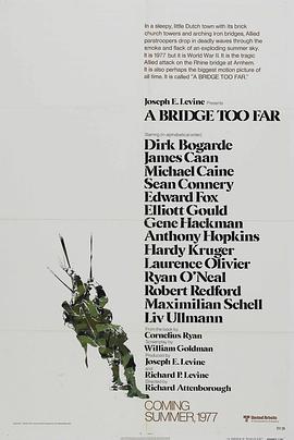战争片,剧情历史战争,欧美大片遥远的桥英语讲述了: 欧战尾声,盟军上下逐渐弥漫着乐观的情绪。为了提前结束战争,各地盟军将领认为只要一番猛攻,便可提早直捣柏林结束战争。于是轻率地将大批伞兵空投在德军营地背后,去攻占阿纳姆的那座横跨莱茵河的大桥。不料遭遇德军的顽强抵抗,盟军付出了伤亡惨重的代价。这场堪称二战中最具戏剧性的战役,终以盟军的惨痛失败而告终。 由奥斯卡金像奖得奖导演理查德·阿滕伯勒执导的战争巨片《遥远的桥》,根据科尼利厄斯·瑞恩的同名小说改编而成。影片表现和讴歌了盟军在二战中浴血奋战的斗争精神,被誉为电影史上的超级战争巨片。本片的明星阵容空前强大,聚集了诸如詹姆斯·卡恩、迈克尔·凯恩、肖恩·康纳利、罗伯特·雷德福、安东尼·霍普金斯等数国的数十位明星。本片荣获1978年第31届英国电影和电视艺术学院奖最佳摄影、最佳男配角、最佳原声等多项大奖与提名。…